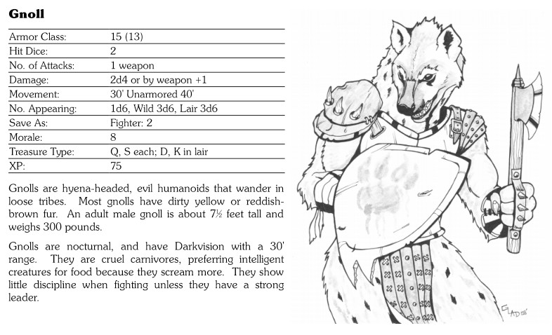 Note: All monster stat images are from the Basic Fantasy RPG (3rd ed.), available at